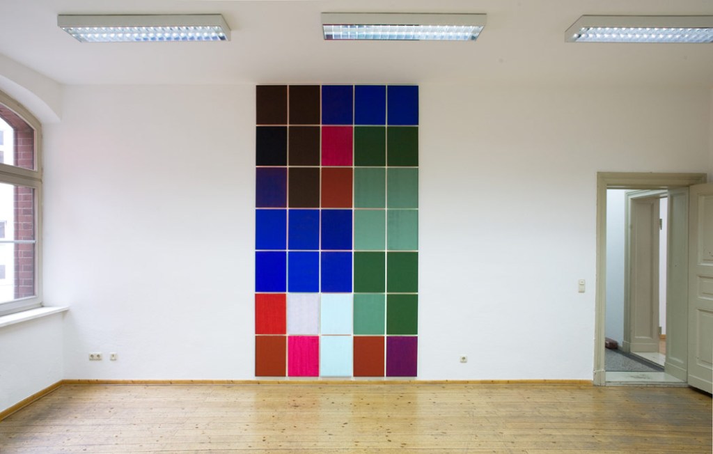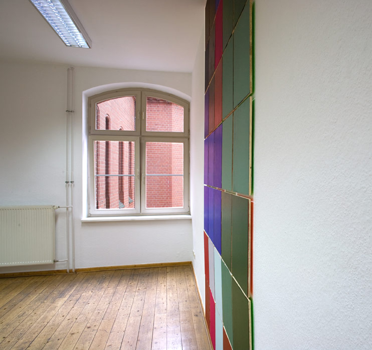 Untitled acrylic paint on wood, gypsum boards and the ceiling, bel étage exhibition together with Alice Musiol, galerie weisser elefant, berlin, 2017